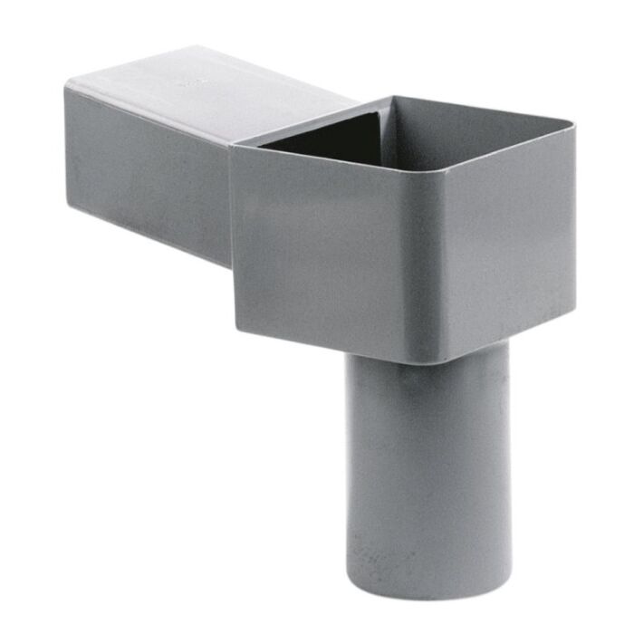 Deze Dyka stadsuitloop is voorzien van een rechthoekige inlaat en open bovenzijde. Het voordeel van deze open bovenzijde is dat de stadsuitloop tevens dienst doet als overstort, verzamelbak en ontluchten van de regenpijp. Je kunt kiezen voor 60 x 80 en 60 x 100 mm uitvoering passend op de kiezelbak. Aan de onderzijde is de uitloop naar de regenpijp beschikbaar in 80 of 100 mm. Je plaatst de regenpijp over de uitloop heen zodat het regenwater altijd in de buis stroomt.