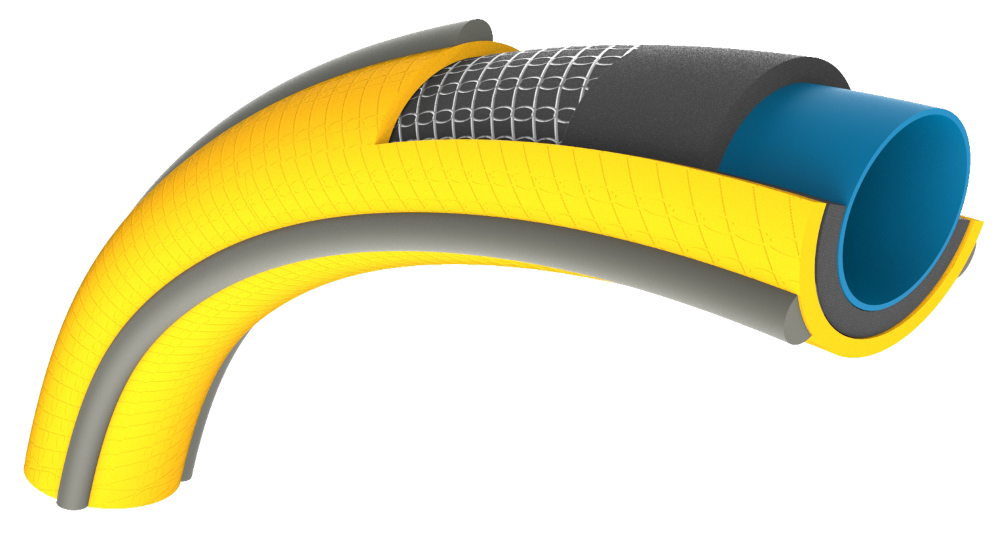 3. Flexibel PVC – deze laag is verantwoordelijk voor extra stevigheid en gemakkelijke hantering van de tuinslang.