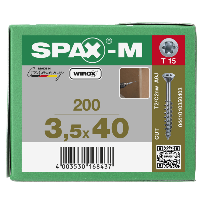 Spax spaanplaatschroeven T15 met boorpunt verzinkt 3.5 x 40 mm deeldraad 200 stuks
